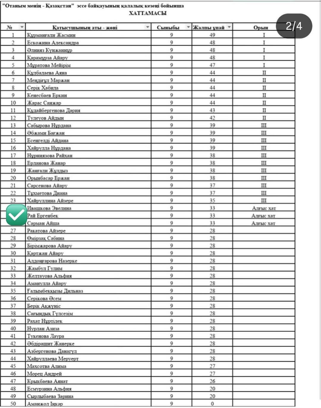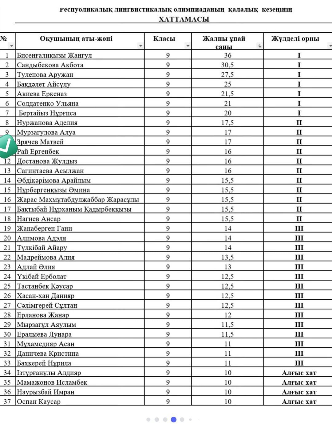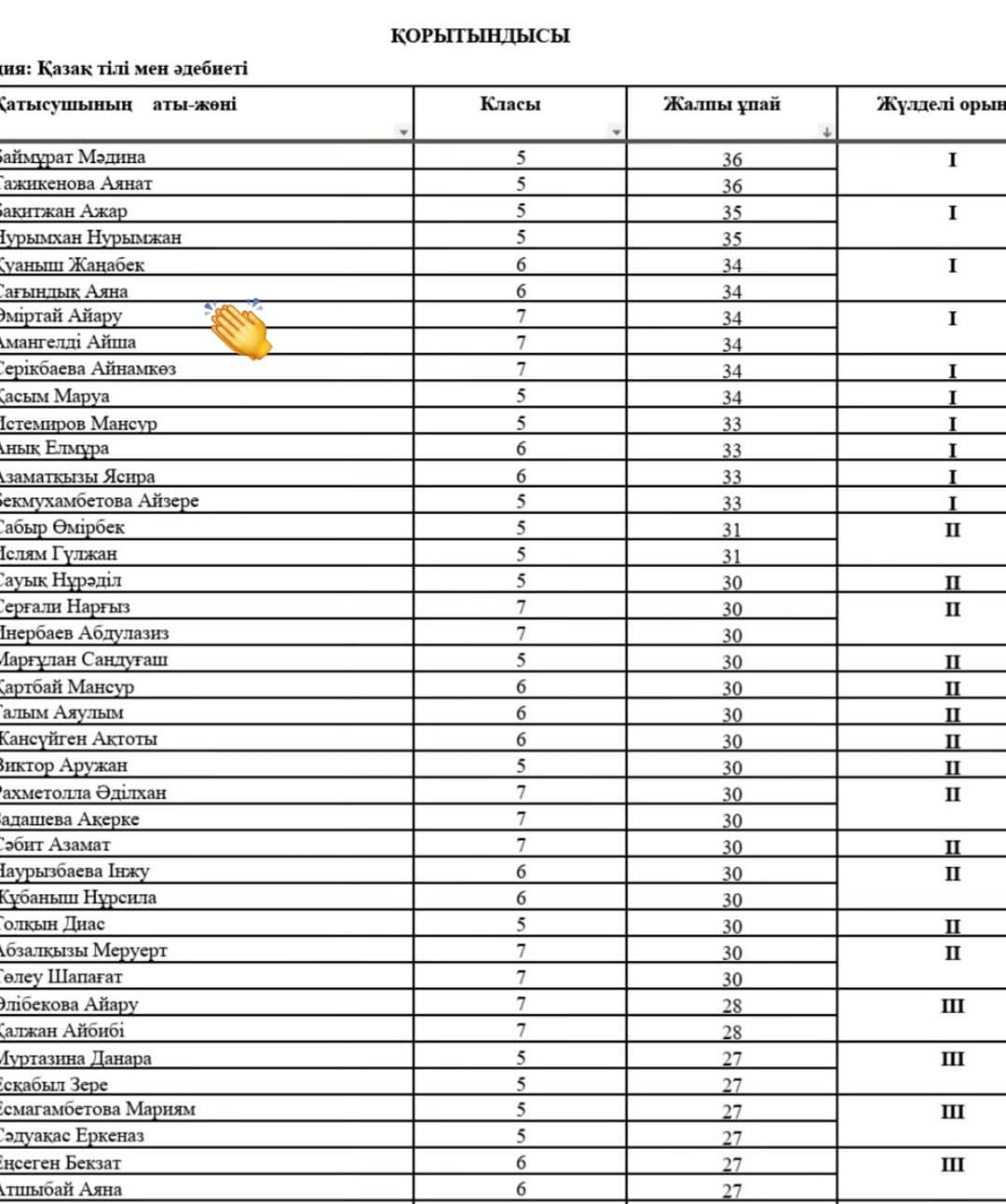 8-11 кластар арасында өткен Республикалық лингвистикалық олимпиаданың қалалық кезеңінің қорытындысы бойынша: