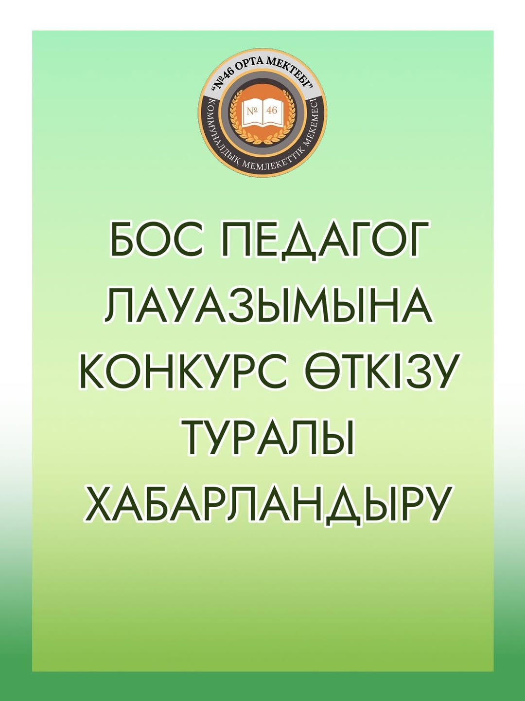 Бос педагог лауазымына конкурс өткізу туралы хабарландыру