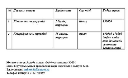 Педагогтарды жұмысқа қабылдау конкурсы