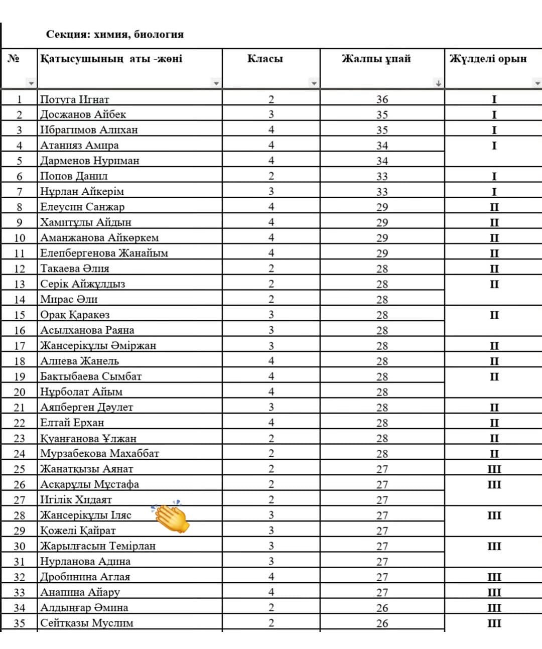 *1.* _Химия,биология секциясы:_ 3 класс Жансерікұлы Ілияс, Қожелі Қайрат ІІІ дәрежелі диплом. Жетекшісі: Тажмагамбетова Ш.Т.