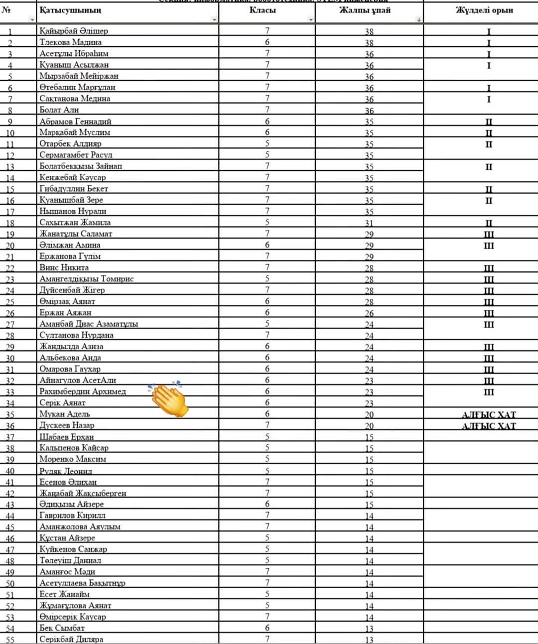 Жалпы білім беретін мектептердің 2-7 класс оқушылары арасында “Зерде” ғылыми жобалар байқауының қалалық кезеңінің қорытындысы бойынша:
